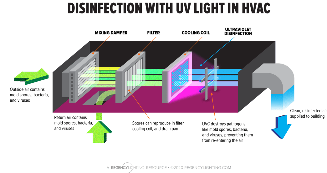 UVGI light can eliminate 99.9% of airborne bacteria, viruses, and fungi. When air purifiers with UVGI lamps are installed within the ductwork of the HVAC system, they kill and deactivate harmful microorganisms by emitting UV-C rays at a wavelength of 254 nm. UV disinfection is an inexpensive and environment-friendly method that has been used worldwide for more than a century. Various studies have shown that UV-C is very effective against airborne pathogens. ASHRAE and CDC even recommend using UV-C for airborne disinfection of SARS-CoV2.